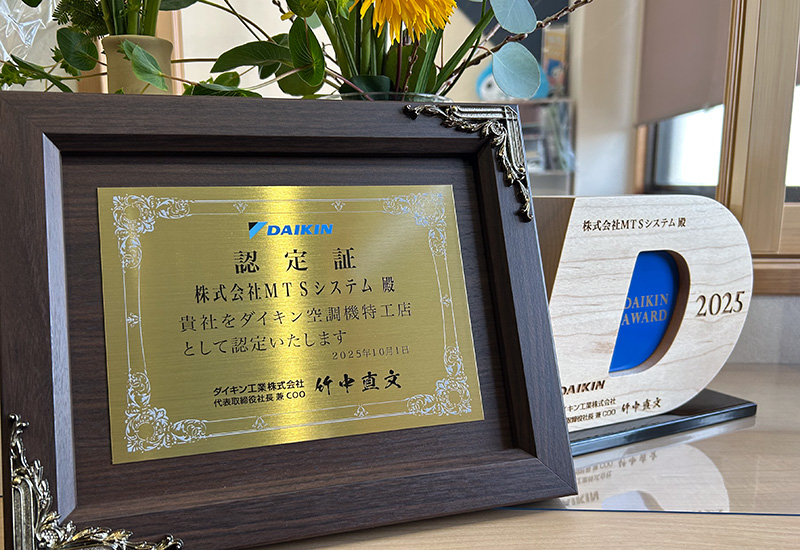 この度、株式会社MTSシステムはダイキン工業認定の「特工店」に選出されました。